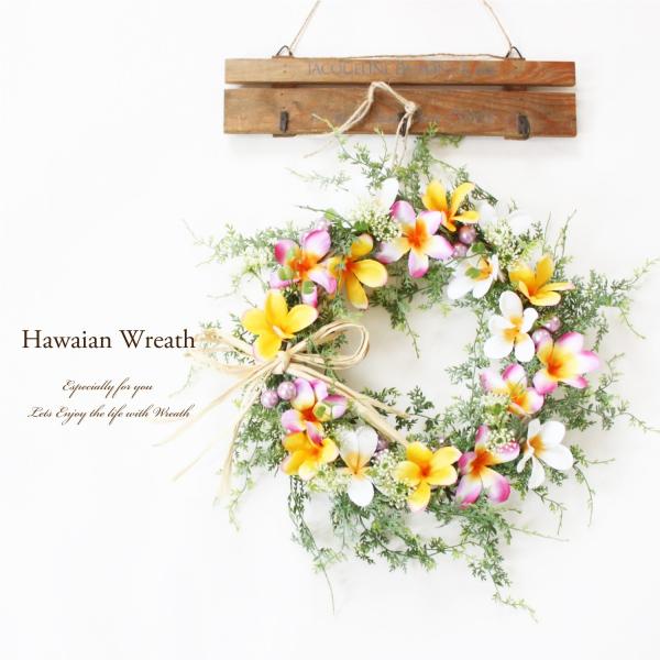 リース 花 ハワイアンリース 玄関ドア プルメリア 造花 夏リース